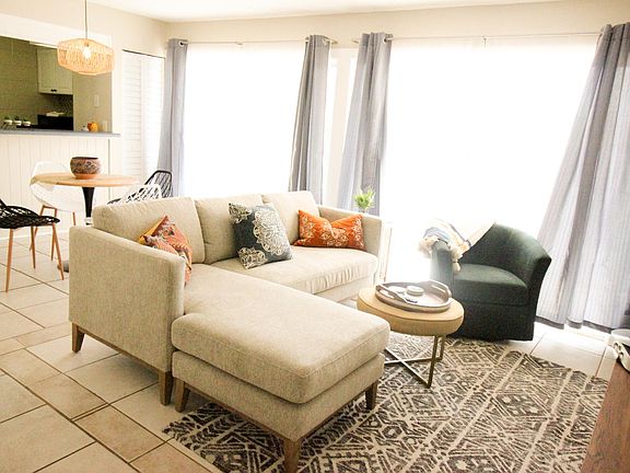 This condo is available to rent monthly from 9/1/25 to 3/31/26. Exact dates are negotiable. Located in the heart of Destin, this ground-floor 2-bedroom condo is just minutes to dining, shopping, Harborwalk Village, Big Kahuna water park, go-karts, amusement park, and other attractions. The condo is located in a gated community with 3 pools, a lake full of turtles and ducks, tennis courts, and a laundry facility. The space fully furnished an offers a queen bed in each bedroom, high speed wifi, 55" smart TV, full kitchen, and a large private patio. The condo has been tastefully decorated in a relaxed bohemian style with a slight mid-century influence. As you enter the condo, you'll find a cozy living room arrangement with chaise sofa, swiveling accent chair, and ottoman. The dining area overlooks the large ground-floor patio. The patio faces south and offers views and sunshine all day long, perfect for coffee in the morning or a drink in the evening. A clever hedgerow provides ample privacy. If you've never experienced a Destin sunrise or sunset, you must spend a morning or evening on this patio. The kitchen is fully stocked with essentials for cooking, including dishes, glasses, silverware, bakeware, ceramic pots/pans, microwave, dishwasher, and ice maker. Coffee and tea drinkers can choose between a Keurig, a standard drip coffee maker, and an electric kettle. Both bedrooms are easily accessible from the living and kitchen areas, and both are adjacent to the bathroom. Each bedroom features a queen bed, linen sheets and shams, and plenty of pillows. All four nightstands have an electrical source nearby, making it easy to charge devices overnight. In the bathroom you'll find a large vanity mirror and shower/tub with complimentary shampoo, conditioner, and body wash dispensers. Additional cleaning and linen service is available during your stay.