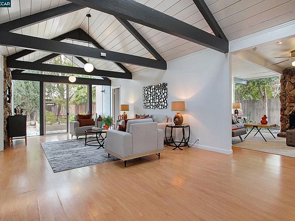 Tucked away on a quiet street. This magnificent Eichler mid-century modern home “The Gallery Model” is a rare find. Designed by Claude Oakland in 1965, the three-bedroom, two-bathroom single-story home features post-and-beam construction, open floorplans, and glass walls that bring in plenty of natural light. The A-framed roofs and stunning view of Mt. Diablo add to the charm of this incredible home. The park like setting of the backyard provides a tranquil environment for one to relax and unwind, one-car garage and outdoor storage. This home is situated in a prime desirable Rancho de los Santos neighborhood and is conveniently located near BART and other public transportation with shops and restaurants just a few blocks away.