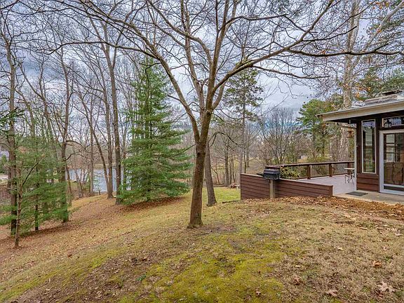 One of a kind find! 4 bedrooms, 2 full baths. Bedford stone ranch on 1.78 acres with shared lake. Step down into the sunken family room that has a spectacular view of the sloping backyard, lake and dock. You could spend all day here looking out all the windows across the back of the home and enjoying the fireplace. There is a remote to turn the gas fireplace on. Family room has a skylight that spans across the width of the room and has beautiful accent lighting for the evening. This home is in a mature and quiet neighborhood tucked away off of New Harmony Road. Home has been well maintained. Depending on your taste, the home may need some updating. The home has an abundance of windows throughout. There is a deck across the back of the home. Make it your home today.