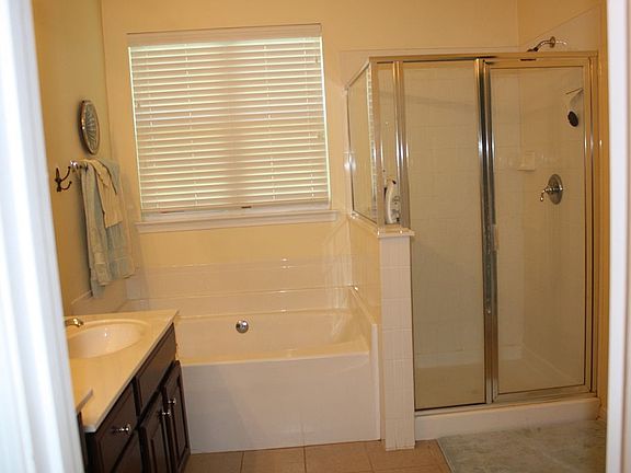 Very open & bright, lots of closet & storage space. 42" cabinets, work island & SS appliances in Kitchen. Double bay windows, 2 story foyer & great room. Master suite down. One Year Home Trust Warranty provided.