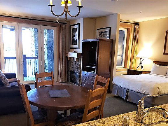 Studio unit with full kitchen, dining area, living room area, fireplace, balcony. Fully furnished (all included in sale price). Ski-in/ski-out condo that averaged over $48,000 per year in gross rents for the period 2017-2019. Phone: (949) 940-0386 Seller will cooperate with real estate brokers.
