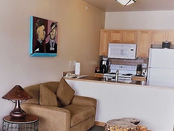 Top-floor, custom, deluxe 2-bedroom condo at Juniper Springs Lodge, 1 of only 3 in existence. This was originally going to be 2 units, however, they were adjoined during the construction process into a large 2-bedroom/2.25 bathroom condo. It's larger than the average 2-bedroom unit and it has many special features. Special features include a separate dining area which allows for more living room space, a walk-in closet in the master suite, a fireplace in the master suite and 2 balconies (one off the living room and one off the master suite). There is a hallway separating the living spaces from the sleeping spaces and a large amount of storage (this is very rare at Juniper Springs Lodge). Custom furnishings are included and artwork may be purchased separately. This is a fantastic rental-income property, too. HOA dues cover hot water!