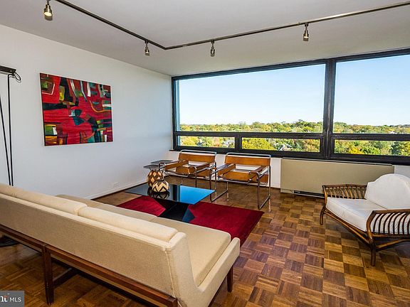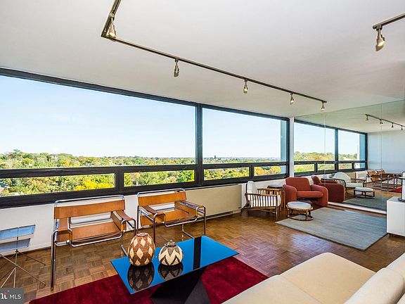 A stunning work of mid-century modernist architecture. Designed by Mies van der Rohe, who is considered by many to be one of the most influential architects of the period. The Highfield House is one of less than 10 residential commissions he accepted in his lifetime. The 15-story structure has the appearance of floating 20 feet above the ground, supported by concrete columns and a 2-story, glass lobby in the center, giving residents the feeling of being one with nature. Greet amazing sunrises from this east-facing unit with stunning panoramic views. Impressive updates with attention to form and function. Monthly fees include 24-hour front desk, doorman, on-site manager/maintenance, pool, community room, heat, central AC, water/hot water, cooking gas. Added to the National Register of Historic Places in 2007. Live in Art!