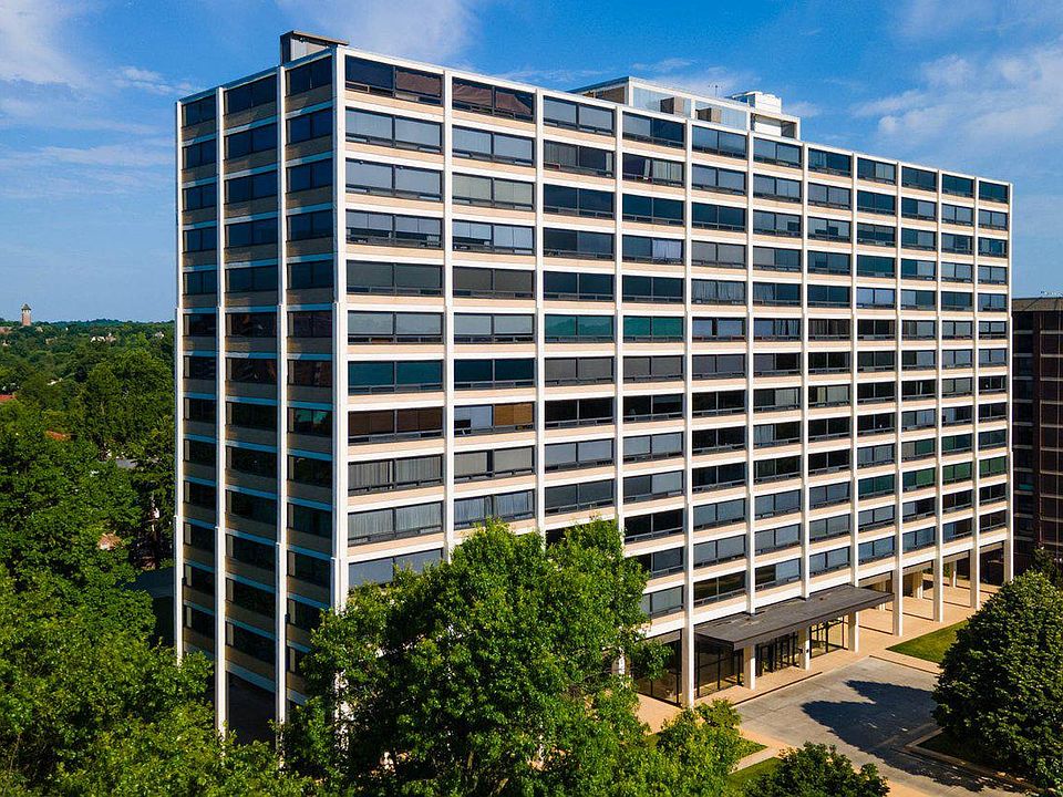 "Architecture depends on facts, but its real field of activity lies in the realm of the significance” - Ludwig Mies van der Rohe. Highfield House is van der Rohe’s historically significant mid-century masterpiece. It's listed on the National Register of Historic Places, and remains an example of iconic style. With its wall to wall windows, this beautifully maintained one bedroom unit has expansive easterly views and a handsomely renovated kitchen. Full-service building, with extra storage in the lower level. Condo fee includes heat, A/C, cooking gas, hot water. Close to Johns Hopkins University, Union Memorial Hospital & Penn Station. Pet-free building. Live in a work of art!