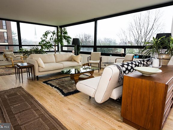 Located in The Highfield House Condominiums, a stunning example of mid-century modernist architecture, this magnificent, 1,505 square-foot corner unit, formerly a 3-bedroom, was renovated to create an airy open space and dramatic, oversized main living area. The wall-to-wall windows frame the majestic neighborhood of Guilford, giving expansive, panoramic north and easterly views. Spectacular wood floors throughout.....the bright kitchen was designed to honor the vision of the period, with the sleek, modern appliances of today. A true masterpiece! The Highfield House rises over the quiet neighborhood of Tuscany-Canterbury and is designed by a man considered to be one of the pioneers of the form: Ludwig Mies van der Rohe. Van der Rohe accepted less than 10 residential commissions in his lifetime, the Highfield being one of them. It exemplifies the modernist ethos of form-following function, yet its simplicity remains indescribably beautiful. It was added to the National Register of Historic Places in 2007. 24-hour full service building with pool and fitness - gorgeous common spaces. Condo fee includes central air conditioning, heat, cooking gas, hot water. Pet-free building.