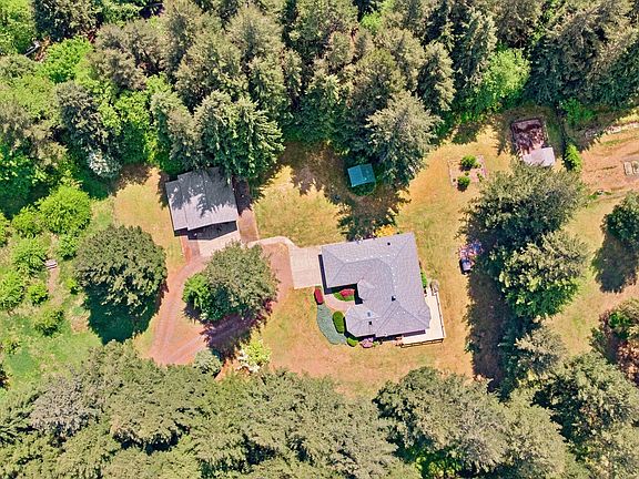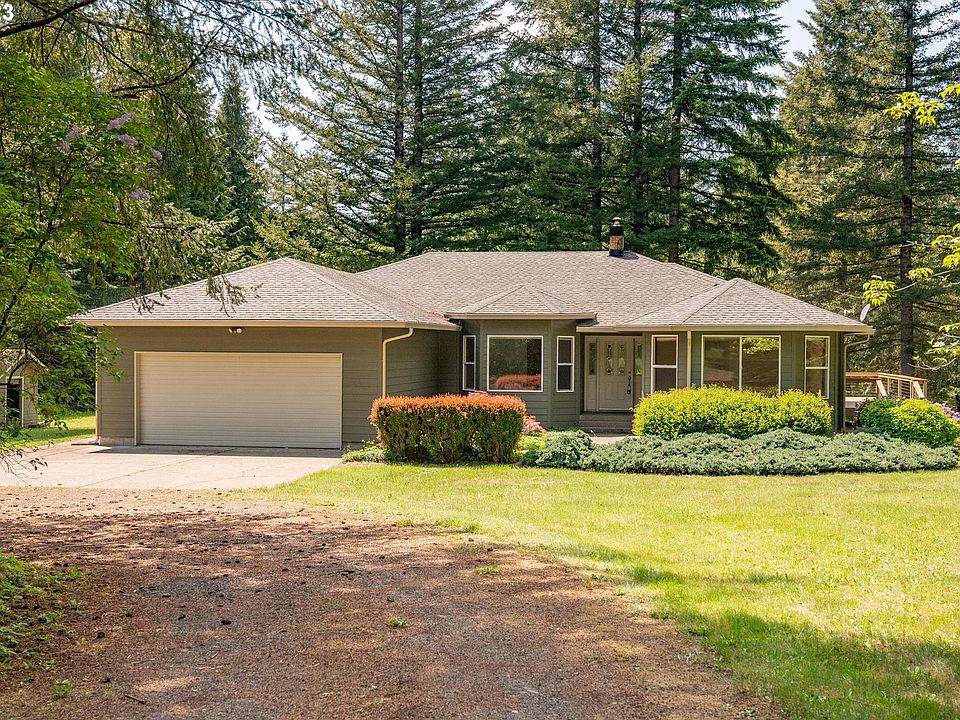 Peace and tranquility! 5 acre lot with a well-maintained 4-bedroom, 1-level house that offers flexible, fresh spaces and a great flow. Primary suite with walk-in closet. Refreshed kitchen and bathroom, newer furnace & water heater, refinished deck, fresh exterior and interior paint Hardwood floors and cozy wood stove. Large shop, tree house, orchard area with apple, plum and pear trees, garden with deer-fence, chicken coop and sauna!