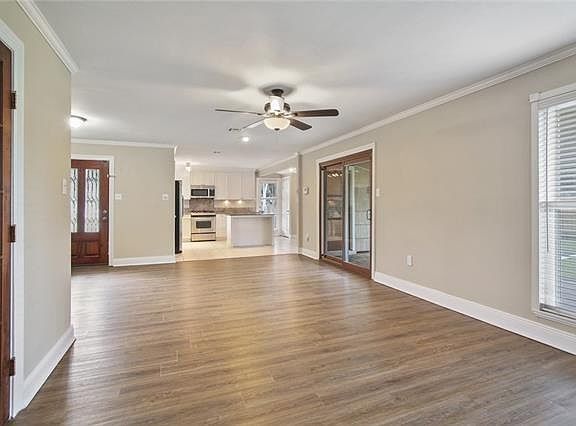 Updated and move in ready, brand new roof, open floor plan, kitchen with island , granite and stainless appliances, including fridge, large laundry room complete with washer and dryer, new alpha alarm system, insulated windows with lifetime warranty and hurricane shutters, blinds through out, fresh paint, new fixtures, large pantry, large fenced back yard with flowering trees, screened in brick patio, all this and the flood insurance is only $897 per year.