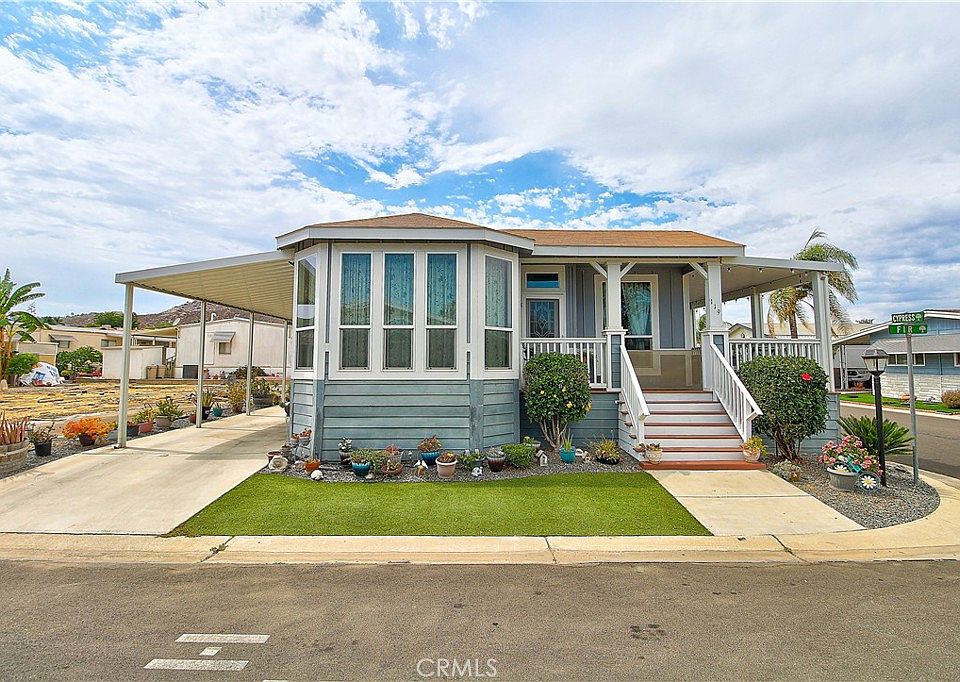 Welcome to this beautiful 3-bedroom, 2-bathroom manufactured home offering 1,508 sq. ft. of comfortable living space, built in 2014 and located in the highly desirable award-winning Riverside Meadows community for active seniors. This vibrant 55+ community is perfect for those who enjoy an active lifestyle, with amenities including shuffleboard, a swimming pool, and scenic river walk trails. It’s also conveniently close to a dog park, shopping centers, and nearby hospitals for peace of mind. Situated on a premium corner lot, this home is filled with natural light and features high ceilings throughout. The island kitchen with a spacious breakfast nook is ideal for casual dining, while the wrap-around deck—accessible by recently updated wood steps—offers a wonderful space for relaxing outdoors. Additional highlights include: Dual sinks and a step-in shower in the primary bath Ceiling fans and central AC for year-round comfort Dedicated laundry room Covered carport & storage shed Small dog run for your furry friend This home truly combines comfort, convenience, and an active lifestyle. You’ll love living here!