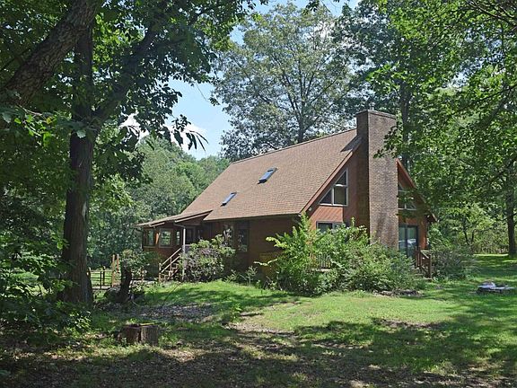 Hurry! Peaceful, quiet, and serene country living! Beautiful A frame home nestled on over 5.5 acres. Gorgeous mature trees, wooded lot, abundance of gardening opportunities, 36 x 30 oversized detached garage/workshop, above ground pool, circle driveway, the list goes on and on! As you enter under the covered front porch, you'll find large living/great room boasting a 2 story, cathedral ceiling, wood burning stove and large windows and skylights that offer a ton of natural lighting. The eat-in kitchen, which has lots of cabinetry for storage and a breakfast bar, flows seamlessly to the adjacent laundry room and then the scenic sunroom that any nature lover would desire! Rounding out the main floor is a bedroom with walk-in closet and full bathroom, and a hallway guest bathroom as well. Upstairs is the owner's suite with a balcony that overlooks your tucked away retreat! There is also a nice sized multi-purpose loft. Downstairs is the walkout basement with an additional bedroom/family room, 1.5 car detached garage, and utility room. The detached garage/workshop with woodburning stove and a lean to is a craftsman's paradise. Cool off in this summer heat in the above ground swimming pool also! Whether you're looking for a peaceful getaway, room to grow, or multi-generational living, this property has so much to offer and is truly a Boonville gem!