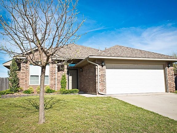 Beautiful home with a large backyard on a cul-de-sac in Moore schools. Home has dark real wood floors in living room, dining room, and hallway. Living room also has a corner cast-stone fireplace. Quartz counters in kitchen & laundry. Kitchen has ample space and includes a pantry, dishwasher, stove, built-in microwave and refrigerator. Large dining room is open looking into kitchen as well. Master bedroom is oversized and includes double vanities and walk-in closet in the master bathroom. Storm shelter in garage!