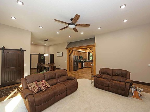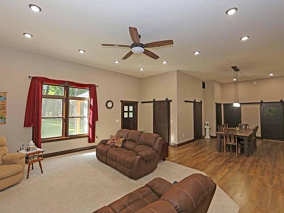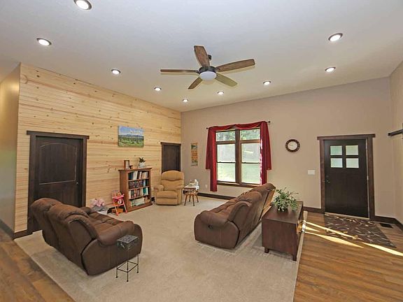 Beautiful, unique and custom home situated on 4.52 country acres, situated back off the road for added privacy, features include 3 bedrooms, 3 full baths, open floor plan with living room, dining room and gorgeous cabinet filled kitchen with granite countertops and appliances, convenient main level laundry, owners bedroom suite with private on suite bath, home office space, attached and oversized 2 car garage, huge full basement, relaxing stamped concrete patio, impressive home that is a must see to appreciate. $300,000