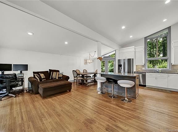Impressive, Split-Level Home Located on a Quiet Lot in Beverly Woods! Completely remodeled! Enter the open floor plan with a vaulted ceiling, beautiful wood floors throughout, and tons of natural light. Kitchen boasts a center island with bar seating, new granite countertops, stainless steel appliances, subway tile backsplash, and views into the backyard. Dining area off the kitchen. Living area on the main level is a great flex space that can be used as an office space. Lower level great room with a gas log fireplace. Downstairs bedroom is perfect for guests and has its own updated bathroom with a walk-in shower. Laundry on the lower level. Master bedroom on the second floor features a sitting area and a large custom closet. Herringbone tiled walk-in shower, tile floor, and vanity with a granite countertop in the master bathroom. An additional bedroom and bathroom on the second floor. Enjoy sitting on the concrete patio while being surrounded by the mature landscaping.