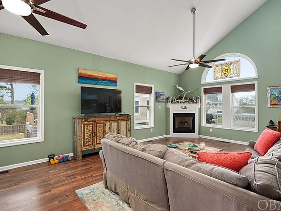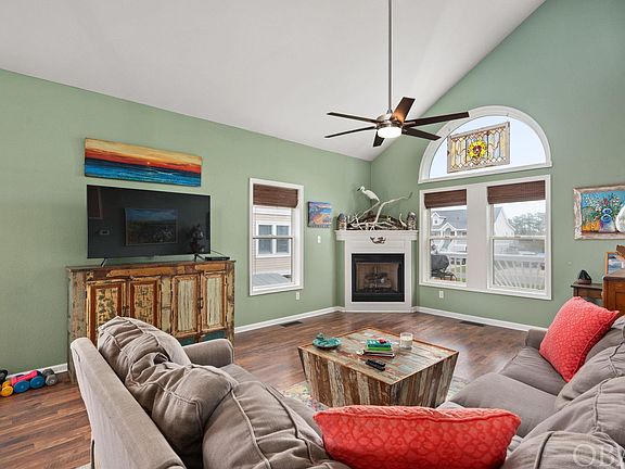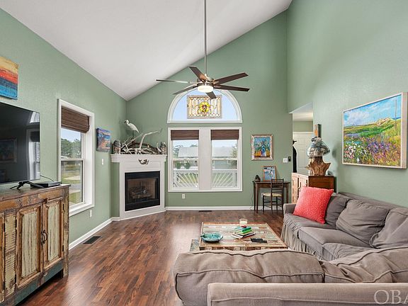 Welcome to your new coastal oasis at 4000 Tarkle Ridge Dr, Kitty Hawk, NC—a charming 3-bedroom, 2.5-bathroom house that promises serene sound views and unforgettable sunsets. With 1,592 square feet of thoughtfully designed living space, this property beautifully blends comfort with the captivating charm of the Outer Banks. Step inside to discover a welcoming interior that immediately feels like home. The open-plan and vaulted ceilings allow ample light to stream in through the new blinds, illuminating the space and showcasing the custom features. The kitchen is complete with new stainless appliances, custom cabinetry and a pantry for all your storage needs. The home has a very functional floor plan with the primary ensuite on the main living level and 2 upstairs rooms with a jack-n-jill bath and a balcony overlooking the marsh and sound. The primary bedroom and ensuite features a walk-in closet and a jetted soaking tub. However, the true essence of coastal living is best enjoyed outdoors, and this home delivers! Enjoy your morning coffee or evening cocktails on the back porch that offers picturesque views of the sound. Or relish hosting outdoor gatherings at the screened-in tiki bar, complete with a gas hookup for your grill. The outdoor amenities extend to a live oak-shaded firepit, a sun deck for basking in the warm sun, and an outdoor shower to wash away the sand after a day at the beach. Enjoy the Kitty Hawk Landing amenities with access to an association boat ramp, dock, and private beach access. Don’t miss out on the opportunity to tour this well-appointed home today! List of upgrades and home improvements on file!
