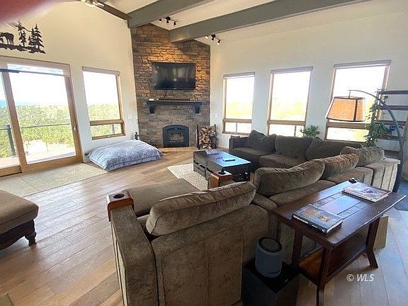 Remarkable Luxury Home for Sale on 39.75 Acres. Discover the perfect mountain retreat in this GORGEOUS 2-story contemporary home featuring 4 beds and 5 baths. Nestled on a sprawling 39.75-acre wooded lot, this property offers ample space for hiking, recreation, and enjoying the natural beauty of canyons and valleys. The open-concept kitchen, dining, and living area boasts high-performance appliances, including a wine fridge, and a native stone fireplace for cozy evenings. Floor-to-ceiling windows provide stunning views of the Sangre de Cristo Mountains from three corners of the living room. The basement offers extensive storage including a mechanics shop, a half bath, and an additional living area that can easily be converted into a movie theater. The scenic wrap-around deck is weather-resistant, plumbed, and wired for a hot tub, perfect for relaxation. Enjoy access to BLM Land just down the road, providing a seamless connection to nature. This home features in-floor radiant heat, a handicap-accessible shower and an elevator adding to its appeal. The barbed wire perimeter fence and a 1000-gallon cistern for landscaping make it an ideal haven for outdoor enthusiasts. Don't miss this opportunity to own a luxury mountain retreat!