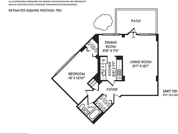 - Total interior livable area: 750 sqft