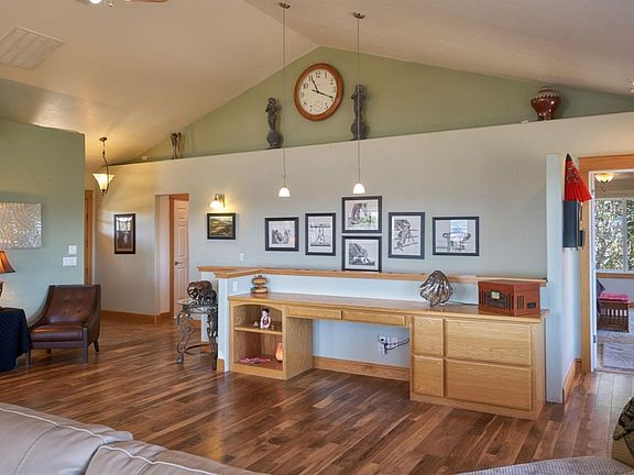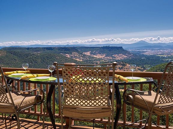 Enjoy top of the world views of the Rogue Valley and many of its landmarks from this amazing home. Situated on over 80 acres with end-of-road privacy you'll enjoy all that this home has to offer. The 3806 square foot home offers an open floor plan and was designed and constructed to take advantage of the views that are offered. Comfortable main level living is a signature trademark of the home combined with a daylight basement which provides a space all its own for an assortment of uses. This two bed, two bath home is open and bright featuring large windows. Quality craftsmanship with a purposeful design can be noticed throughout. Adjacent to the home is a garage/guest quarters that has its own private deck with views with the under story featuring a space for a large RV and a shop space. The property is well situated for horses with a barn, tack room and loafing shed. Views include the Rogue River, Table Rock, Mt McLoughlin, the Cascades, orchards and vineyards including Del Rio.