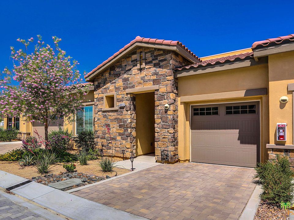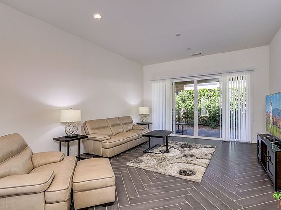 Welcome home to Villa Portofino, the premier 55 or better luxury community located in the heart of Palm Desert. You are going to appreciate the designer picked upgrades in this Ravello model. Leave your handyman and contractor at home as this is 2015 construction and flooring, kitchen and bathrooms are stunning. 2 bedrooms, 2 full baths, interior courtyard, high ceilings, porcelain tile plank flooring, upgraded granite counter tops, upgraded cabinetry and upgraded master shower. The interior of this unit definitely inspires. The only single level unit in the Vineyards section of Villa Portofino offering total privacy from your neighbors. Solar panels on the roof for greatly reduced electric bills add to the energy-saving and eco-friendly features from dual glazed windows, tankless water heater, fiberglass insulation and programmable thermostat. The 30,000 square foot clubhouse is steps away where you can enjoy the bistro, movie theater, pool, fitness center, happy hour & more.