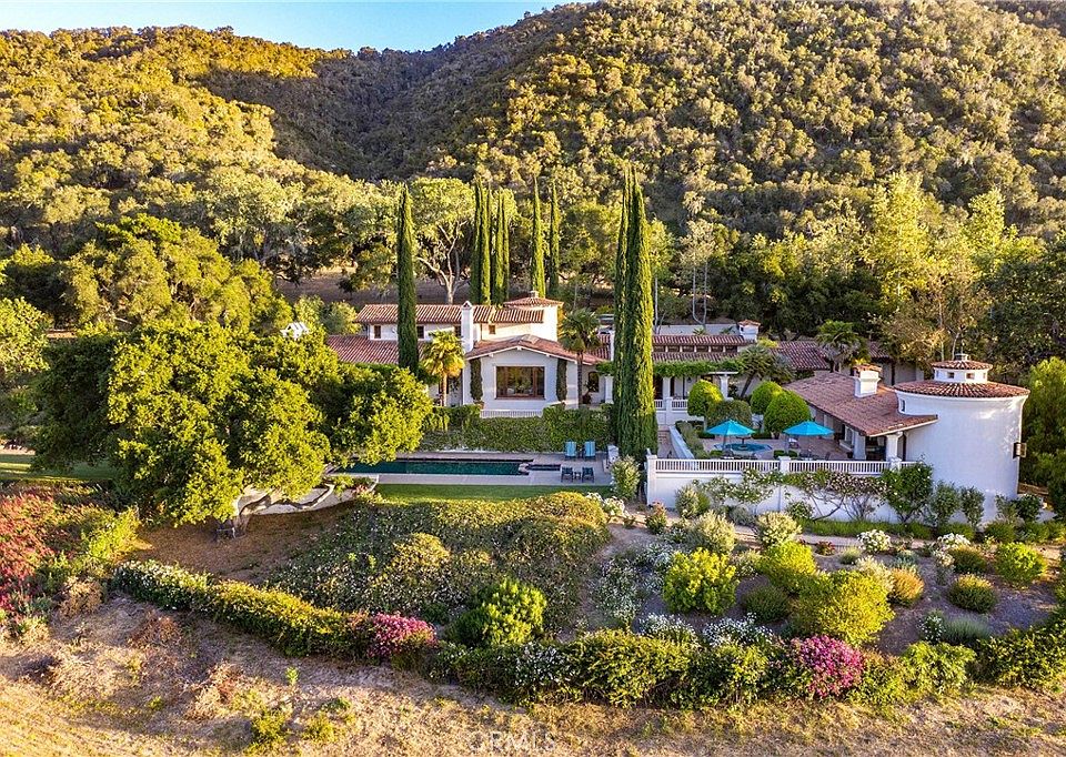 Just Reduced! Rancho Bella Vista is a paradise of its own making. This Magnificent Estate lies in the heart of the Santa Ynez Valley with the best protected views and incredible privacy. Just a short distance to Santa Barbara and the California Riviera this 123+ acre Rancho Bella Vista lies in the heart of the Santa Ynez Valley with 70+ AC of organic walnut trees overlooking the Santa Ynez River and the Los Padres Mountain range. Craftsmanship and elegance define the essence of this Mission style hacienda compound combining a 7900+ sq. ft. residence and a 1500+ sq. ft. enchanting cabana with full kitchen, fireplace, bathrooms, laundry, and expansive verandas. The residence features grand ceilings and dramatic picture windows with views of the entire valley. The kitchen is outfitted with every amenity a gourmet might want for lavish entertaining as well as intimate family gatherings. Living areas with French doors lead from all rooms to private patios, pool, and gardens. Perfect for living in wine country, a large wine cellar is located with easy access from dining and living areas. 6 Handsome sandstone fireplaces, handcrafted iron fixtures, wide planked oak floors and clerestory windows enhance a timeless feel. The property with its perfect outlook extends to the Santa Ynez River for swimming & includes an agricultural 3000 SF barn, abundant water from (2) wells and 114 Solar panels concealed for electric. As a bonus this working Organic walnut ranch is in the Williamson Act resulting in a Huge tax incentive and substantially reduced property tax. The 2025' Ag ordinance Act gives you all the more opportunity for land uses
