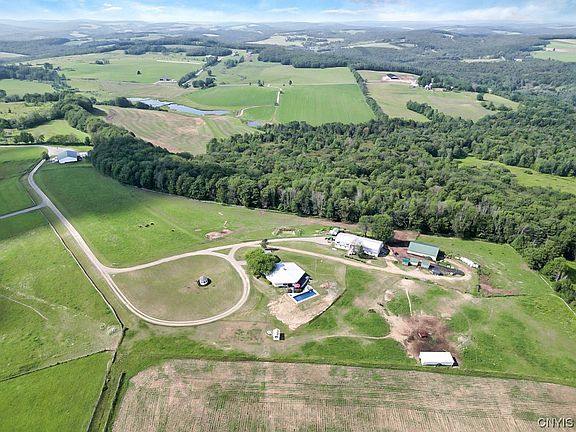SELLERS ARE RELOCATING AND ARE MOTIVATED! Nestled atop one of the highest points in Marathon, breathtaking panoramic views of Greek Peak Mountain and glistening Whitney Point Reservoir await you from this remarkable 24-acre farm property. This is a property that embraces all seasons. Enjoy the refreshing pool in summer and nearby finger lakes & wine country. Greek Peak is a winter wonderland with pristine slopes, toboggan runs, zip lines, & an indoor waterpark. Maple Hill Golf Course is within walking distance, offering tranquility and snowmobiling trails. The property presents an ideal haven for a vacation home or permanent abode, while utilizing the building for a flourishing business. Immerse yourself in a world of animal-related endeavors, for beloved pets or animals large and small. Let your entrepreneurial spirit soar in a diverse range of business ventures. Currently home to Mid Lake Cavaliers and Mid Lake Wagyu, the property is equipped for cattle, horses, and more. Zoned as agricultural land, it presents ample opportunities. Both the house and building have been lovingly renovated, ensuring that your arrival marks the beginning of a new chapter.