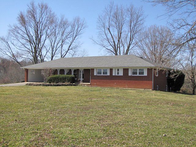 This brick ranch home features a kitchen/ dining room combination, formal dining room, living room, 4 bedrooms, 2 baths, utility room, and full unfinished basement with fireplace. Other amenities include heat pump, central air, 2-car carport, 40x42 barn, front porch, large rear deck, storm shelter, city water, and septic system. All situated on 3.2 acres.