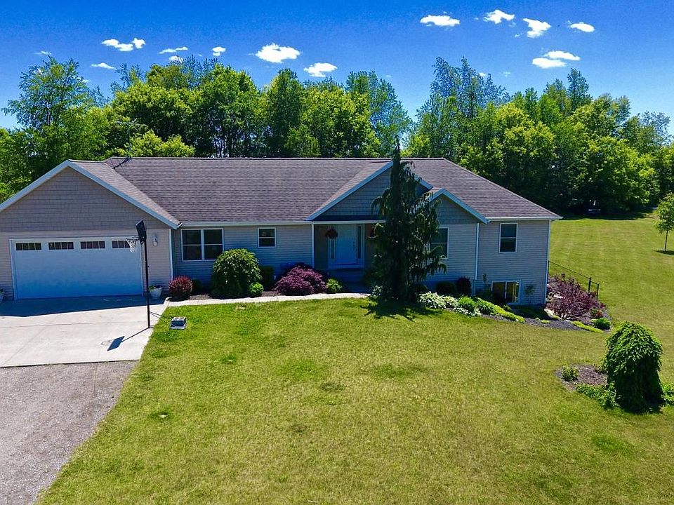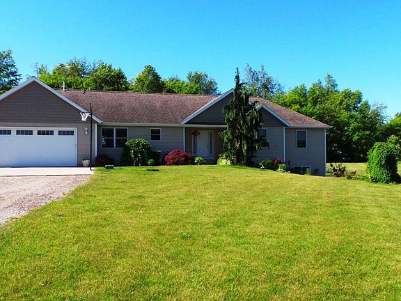 First time on the market, custom built ranch home featuring 3 bedrooms, 2 1/2 bath, master suite, main floor laundry and huge living room. The huge deck over looks a large back yard. Full unfinished walk out basement with geothermal heating system. Home sits on 5.6 acres and back off the road for privacy.Beautiful landscaping and multiple level ponds for fish and frogs. Wonderful family home with room to roam. Come check out this home today.