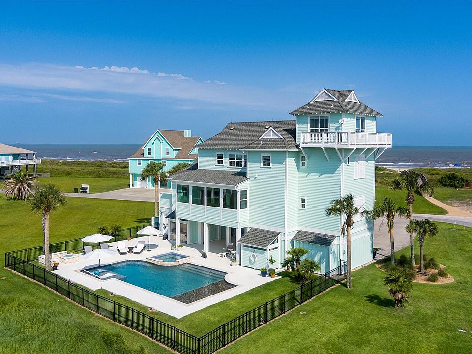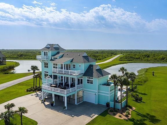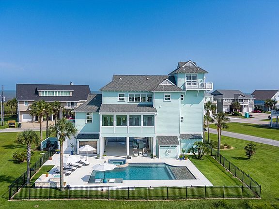 Experience coastal luxury at its finest in this stunning 3-story home located in the prestigious gated community of The Biscayne on Port Bolivar. Perfectly positioned on a corner lot with breathtaking beach views and overlooking a peaceful community pond, this property offers the ultimate in coastal living. Step outside to your private oasis, featuring a sparkling swimming pool, relaxing hot tub, ledge loungers, gas fire pit, and a built-in outdoor kitchen and bar with TV—ideal for entertaining or unwinding in style. Inside, the home showcases beautiful wood floors, four spacious bedrooms, three full baths, and two half baths, all designed with exquisite attention to detail. A residential elevator adds convenience, while a whole-house generator ensures comfort in any weather. Truly one of the most unique and luxurious homes on the peninsula, this property captures the perfect blend of elegance, functionality, and coastal charm.