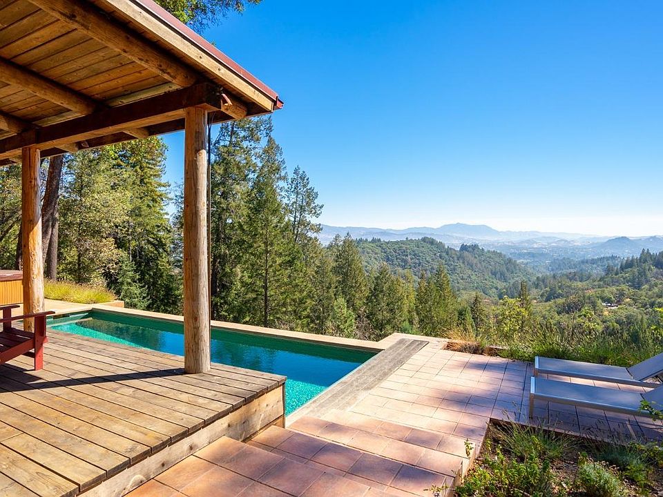 When you want to get away from it all, this romantic log cabin is the answer. Nestled on 48+/- acres in the hills west of Healdsburg, with breathtaking views of Dry Creek Valley that unfold in front of you and stretch to the distant Mount St. Helena. Far enough from Healdsburg to afford privacy and tranquility, but close enough to enjoy all that the wine country has to offer. This custom-built cabin enjoys soaring ceilings, a bedroom on each level, 2 full bathrooms, and a coveted covered porch. The gorgeous pool is the perfect exclamation point on an already marvelous property.