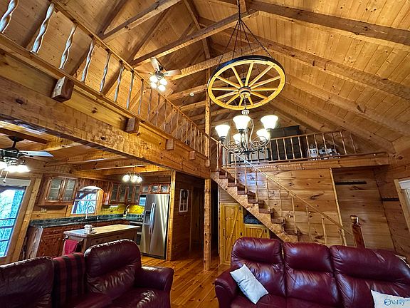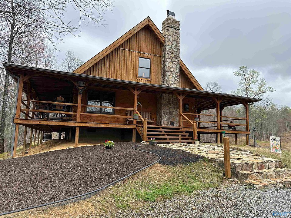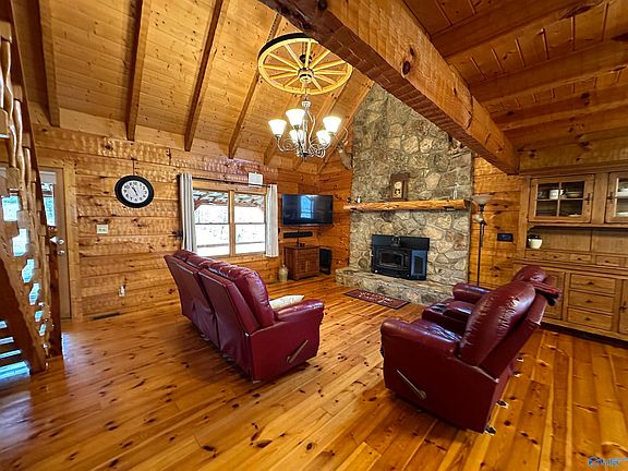Are you looking for your own oasis? Privacy, plenty of nature and a wonderful home, pond and detached workshop are a few of the many amenities you'll fall in love with in this gorgeous cabin that is nicely tucked away in beautiful Skyline bordered by the James D Martin wildlife management area. This cabin offers a spacious floor plan with cedar closets, cedar decking, blueberries, crabapple and cherry trees, along with an extra bedroom upstairs for guests and a large bonus room. The rock wood burning fireplace give depth and warmth to the large family room. The wrap around porch offers a view from every angle and don't forget to look at the listing photos for wildlife caught on camera.