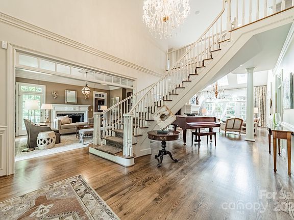 A rare opportunity to own a private retreat in one of Charlotte's most coveted neighborhoods. Tucked away on a .57-acre interior cul-de-sac lot, this stunning Low Country estate offers a main-level primary suite featuring dual walk-in closets & a spa-inspired bath. At the heart of the home lies the kitchen, appointed with exquisite custom cabinetry, professional-grade appliances & inviting breakfast room that opens effortlessly to indoor & outdoor living areas. Elegant gathering spaces, including formal dining & living rooms-each with its own fireplace-plus a spacious great room anchored by a 3rd fireplace & expansive views of the backyard oasis. Upstairs you'll find 3 add'l bedroom suites & an oversized bonus room w/built-ins & a wet bar. The outdoor living spaces are unparalleled-sparkling saltwater pool & spa w/ a natural waterfall, a fully equipped kitchen, generous dining & seating areas on the lanai, plus a screened porch & a full pool bath for added convenience. Welcome Home!