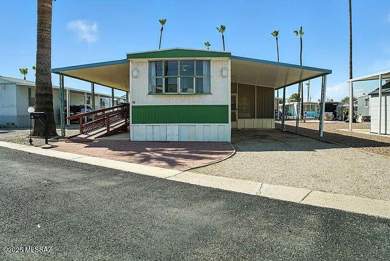 Unbeatable price in a prime Tucson location! Nestled in the well-kept 55+ Paradise Village Mobile Home Estates, this charming and updated home is ideal for enjoying Tucson's beautiful winter season. With brand new vinyl flooring, updated bathroom, new oven, refrigerator, water heater, and A/C, and fresh paint it's move-in ready and perfect for seasonal or year-round living. Relax in the bright Arizona Room and take in Catalina Mountain views. Just minutes from shopping, dining, the Tucson Botanical Gardens, and quick freeway access -- you'll love the convenience and warmth this central location offers. Enjoy sunshine, comfort, all winter long -- at a price that's hard to beat!