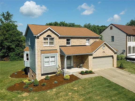 Quality throughout this custom two story in great neighborhood & corner lot! Attractive kitchen with updates including Corian countertops and custom backsplash! Kitchen opens into the large family room with beautiful fireplace! Dining room is accented by the abundance of natural lighting. Living room and half bath complete the main level. The second floor features the spacious owner's suite with vaulted ceilings, updated bath with large ceramic walk-in shower and double bowl sink, three additional spacious bedrooms and full bath complete second floor. Lower level is huge and perfect for additional storage. Updated lighting throughout. Private covered back porch perfect for entertaining overlooks the level backyard. Convenient to Hopewell schools, 376, Airport and Pittsburgh! Home warranty included!