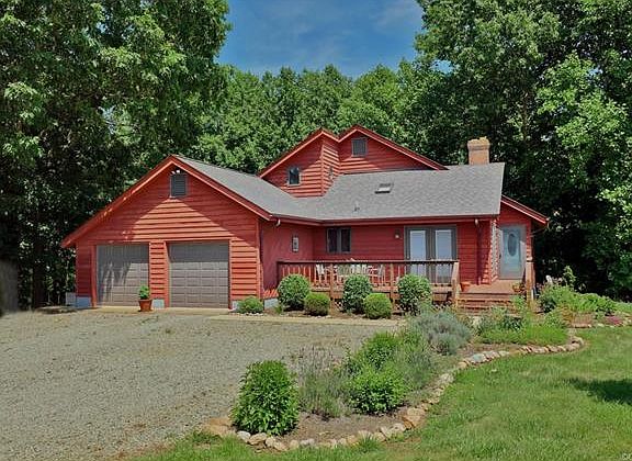 Ten acre country estate with custom built contemporary, two-story home with walk-out basement. Vaulted ceilings, stone hearth with flue for wood stove in the great room, lots of casement windows for natural lighting, skylights. First floor master with wood floors, access to private deck overlooking the park-like grounds. Walk-out basement has lots of potential for additional living space or storage, wood stove and access to lovely private patio, perfect spot for a hot tub. Kitchen has been updated with beautiful granite counters and opens to dining area and great room. There is second bedroom on main level and additional full bath on main level. Upstairs, there is a loft that is great for office area and large bedroom with two closets. Central vacuum, two-car attached garage. There are two out-buildings, pole barn and a large insulated steel shop with electricity, water, plumbed for propane heat and lean-to storage area. Approximately six acres open, perfect for horses, animals, gardening or enjoying the outdoors. Creek along the back of the property. New roof 2015.