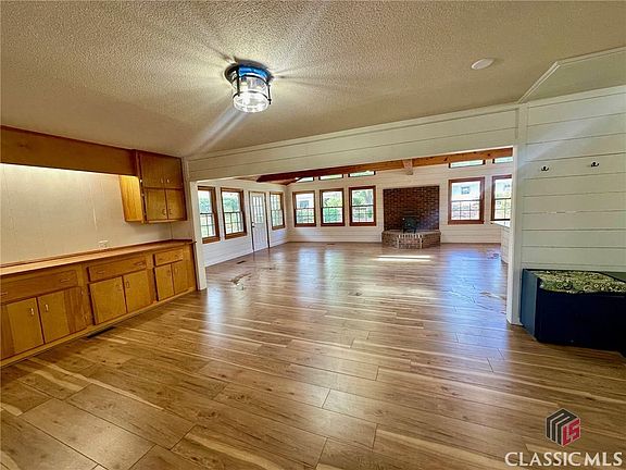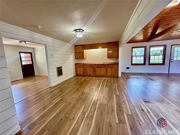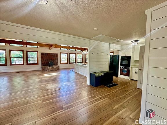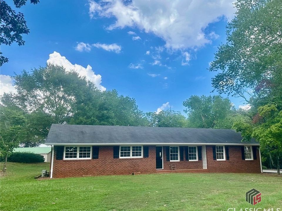 Updates Galore 2024! Brick Ranch with Open Concept Floor Plan. Situated on 1.99 acres only short drive to downtown Watkinsville ( 5 miles to Jittery Joes) for shopping and dining and only 6 miles to new Wire Park! Plenty of space to enjoy the outdoors. New black chain link fenced backyard. Step into entertainer's dream with ample space for all your friends and family. Kitchen with breakfast nook, open to family room and dining area. Kitchen has amazing natural light, huge new island with new cooktop, new granite countertops, new sink and fixtures, kitchen cabinets all refaced, painted with new hardware, plenty of cabinet space. Family room and dining room opened up with removal of small walls and cabinets to improve overall functionality of open concept. Features include Fisher wood stove, exposed beams with new recessed lighting and built in buffet for dining room. New LVP flooring in kitchen, breakfast nook, mud room, family room and dining room, and 3rd bedroom. Original hardwood floors in foyer, hall, 2nd bedroom, and master all refinished to new condition. New shiplap in several rooms. Throughout home... New interior doors and hardware, new interior paint, new lighting fixtures and recessed lighting, new electrical outlet covers and switches, new baseboards and trim, new LED light bulbs, new smoke detectors and new air vent covers. Both bathrooms have been given modern facelift. Hall bath new vanity, sink, faucet, tile floor, shiplap, shower door, mirror and towel hardware. Master bedroom has extra shelving, fixtures, walk in closet and added a new mini split unit for those who like it extra cool at night. Master bath remodeled with spacious tiled shower with door, dual vanity, plumbing fixtures, tile floors and mirror. 3rd bedroom located off kitchen is spacious with closet and laundry room located here plus exterior door access and new drop ceiling. Space is perfect as a bedroom or whatever space meet your needs. In addition to new fenced backyard, numerous trees were limbed and/or removed. The mature landscaping includes shady trees, garden areas and plenty of space to enjoy the outdoors. Workshop has single garage door (was not in working order when purchased and window HVAC unit (never used by current owner) offering numerous possibilities. New HVAC unit for main home 2024. This home is ready for its new family to enjoy for years to come.