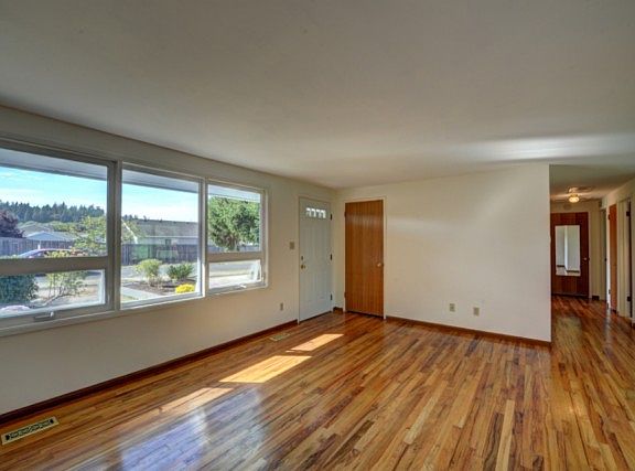 Move in ready! 3 bdrm plus a 4th bedroom that may be used as an accessory dwelling with it?s own entry and 2nd kitchen. Ample closet/storage space. Hard wood floors, dining area, 2 fireplaces and natural gas heat . On a level corner lot, dead end street in a great location close to parks, schools, shopping and easy access to HWY 20. Welcome home!