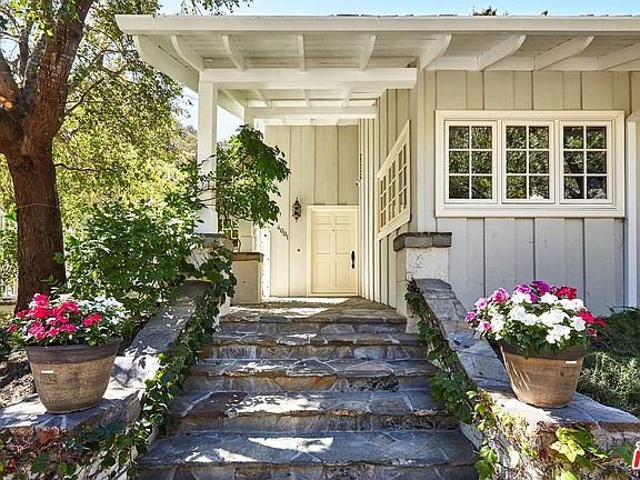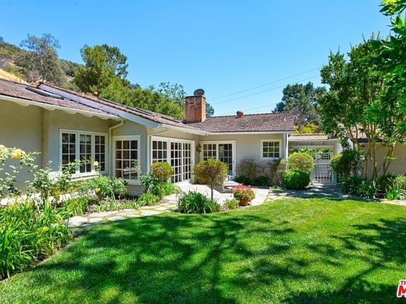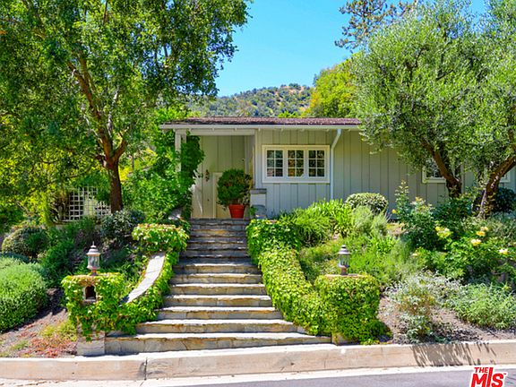 Quality Traditional-Ranch in upper Mandeville Canyon. Sited above the road on a lush flat knoll, this custom designed one-story home features an inviting formal pitched beamed living room with fireplace, a large formal dining room with fireplace and a gourmet cook's kitchen with upscale built-ins, appliances and sunny breakfast area. The bedroom wing has a convertible den/bedroom with double doors, a guest suite with full bath, a lovely powder bath, plus a grand master with sitting room, multiple closets and a luxe bath. A beautifully landscaped private garden with fountain, grassy yard and alfresco patios create lovely views spanning from living room, kitchen and master suite. Freshly painted throughout with gleaming hardwood floors and new carpet this delightful and enchanting home is "move in" condition. There is a 2-car garage with storage and ample street parking. Close proximity to scenic hiking and biking trails.