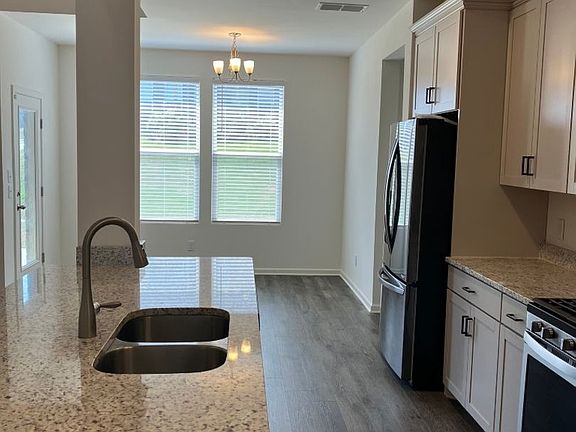 Build in 2019 this 4 Bedroom, 3 bath home with primary bedroom on lower level. Bedroom on 1st floor that can be used as an office. All flooring on 1st floor is LVP, SS appliances, granite counter tops, Gas Stove and gas grill connected to gas line on back porch is staying. Surround sound downstairs. Large bonus room upstairs, along with small open room at top of stairs. Washer/dryer included. Tankless water heater. covered porch in back of home. Large community Pool. Small pets welcome