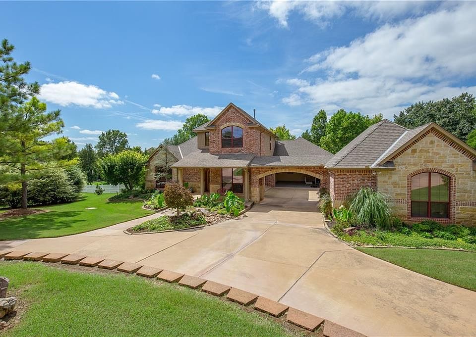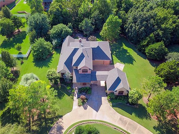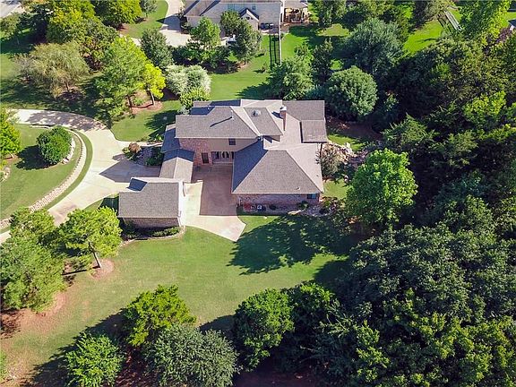 STUNNING HOME ON TREED 2.23 ACRE LOT. True 4 bed + study with 4 car garage, large UNDERGROUND storm shelter you can STAND in, water well for water irrigation and 2 downstairs bedrooms including master suite with direct access to back patio and water feature. 2nd downstairs bedroom is split away from master suite & is perfect for mom, dad or for a guest room. 2 more bedrooms upstairs with another bath & nice media room or large rec room/playroom. About $20,000 in plantation shutters throughout the home. Open kitchen features large island, convection oven, gas cooktop and overlooks family room/sunroom. AWESOME living room ceiling ! Peaceful water feature for the ultimate in relaxation !