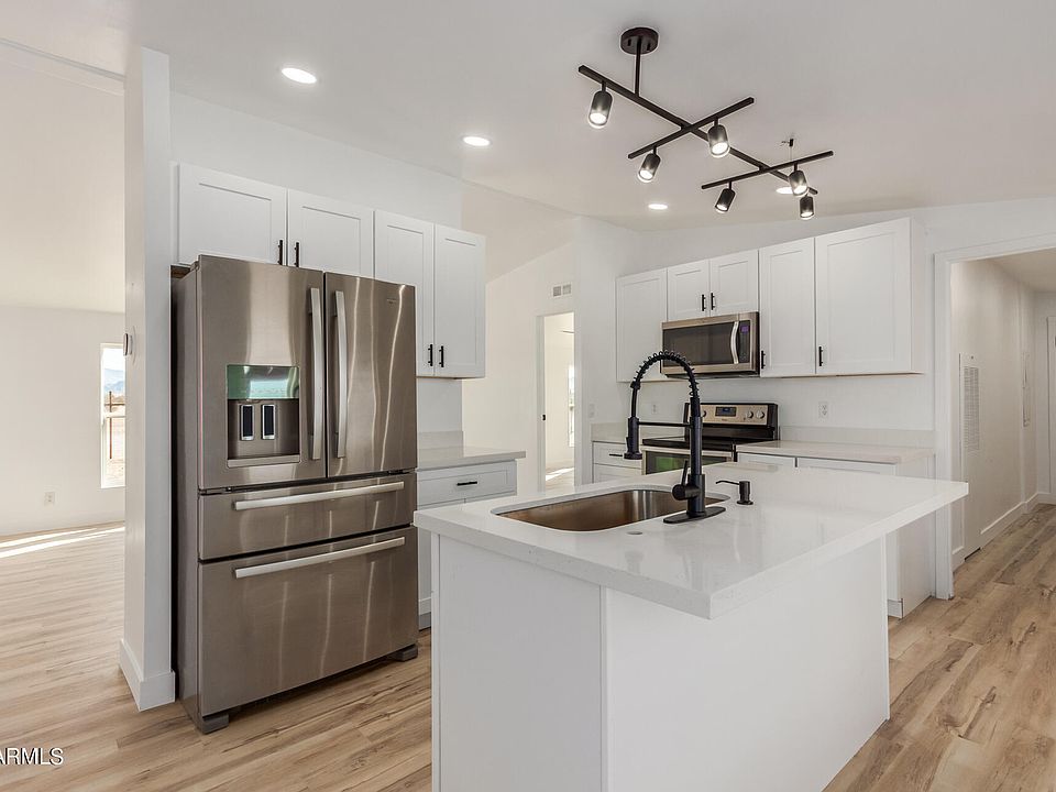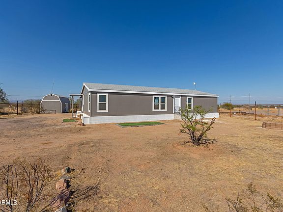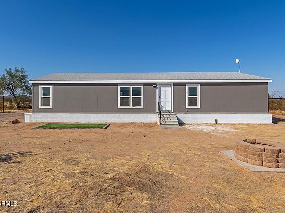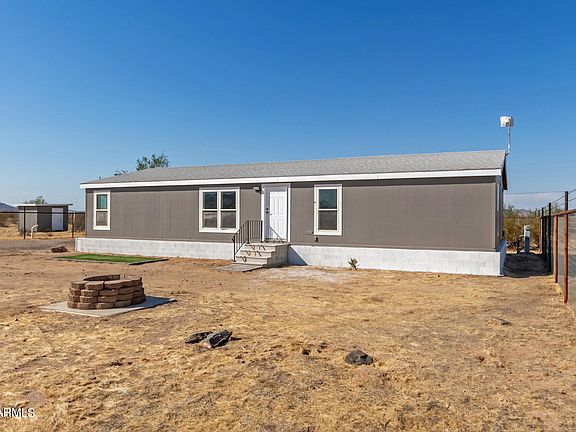A fully updated 3 bed, 2 bath mobile home in Maricopa w/a fully-functional workshop is now for sale! 2.2 acre lot with horse privileges and delightful mountain views! Come inside to discover spacious dining & living areas w/elegant wood-look flooring, vaulted ceilings, recessed lighting, and neutral palette throughout. The kitchen is comprised of white shaker cabinetry w/quartz counters, newer stainless steel appliances, and an island complete w/a breakfast bar. End your day in the primary bedroom, boasting a walk-in closet and a private ensuite for added comfort. Finally, out back you'll find a cozy backyard with a full perimeter fence and covered patio, a storage shed, and fully-functional workshop w/a mini-split. Brand new water pump system & water heater, and newer AC unit and roof!