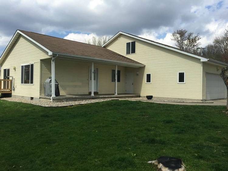 This is a 3 bedroom, 2 bath home. The master suite includes a private on-suite bath and a walk in closet. All Three bedrooms are on the first floor. There is a fourth bedroom/loft apartment located over the garage with a private bath and kitchenette. The five acres include an outbuilding and a pond.