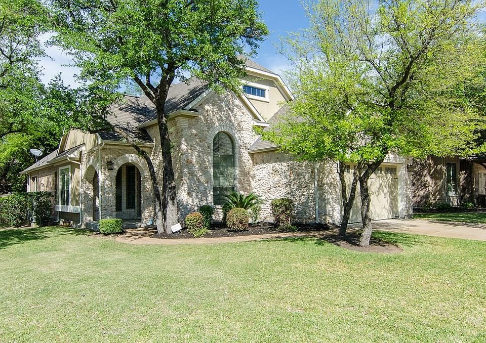 Picture perfect & ready to move in! Located on corner lot with established oak trees in Ranch at Brushy Creek * Desirable 1.5 story floor plan with 3 bedrooms plus study on the main level & flex space upstairs with full bath * Interior features hardwood flooring everywhere except baths * Extensive crown molding * Kitchen is open to family room with granite counters, stainless Whirlpool Gold built-in appliances, brushed nickel drawer pulls * Samsung side by side refrigerator & Frigidaire front load washer & dryer all convey * Low maintenance yard has a sprinkler system * Covered front & back porches have been tiled * Easy access to major roads, shopping & restaurants