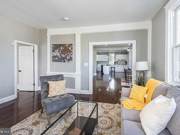Stunning porch-front renovation offering over 3,000 sq. ft. of exceptional living space, beautifully blending classic charm with modern luxury. Step onto the inviting covered porch—a perfect spot to relax and enjoy morning coffee—then enter a bright, open main level filled with gleaming hardwood floors and abundant natural light. The spacious living room flows seamlessly into a separate dining area, ideal for family gatherings and entertaining. The show-stopping gourmet island kitchen features sleek Quartz countertops, stainless steel appliances, and a breakfast island with seating—making it the heart of the home. The main level Primary suite provides a peaceful retreat with a generous walk-in closet and a spa-inspired bath offering double vanities, designer tile, and an oversized walk-in shower. The upper level hosts three additional bedrooms and a beautifully updated full bath, each space designed for comfort and style. The finished lower level offers incredible versatility with a large family or recreation room—perfect for movie nights or entertaining—plus a fifth bedroom and a third full bath, ideal for guests or an in-law/au pair suite. Outside, enjoy the expansive yard offering plenty of space for outdoor living, gardening, and play, along with the charming front porch that enhances the home’s curb appeal. Every detail has been carefully considered in this polished renovation, creating a move-in ready home that perfectly balances modern convenience and timeless character.