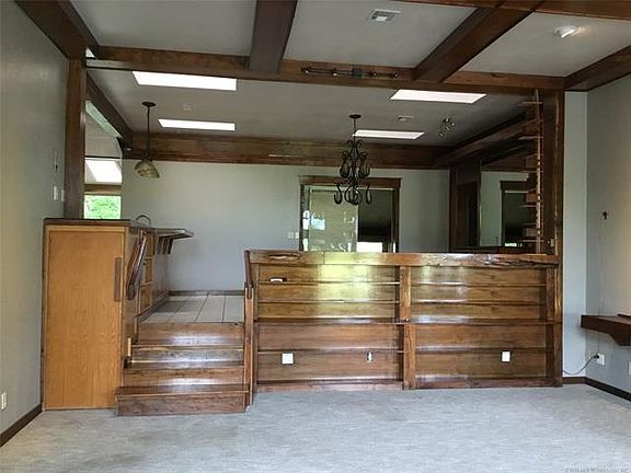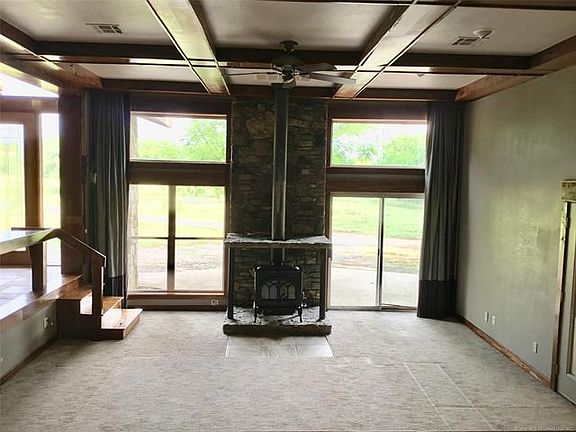 Bring horses to this secluded custom home on 23ac, Heavy woods/pasture land. Inside Storm Shelter. Custom woodwork. Sunken living w/wood store. Huge closets. 25x30 Shop. Creek/Pond. Oologah school. Hiway 169 access. Needs TLC...priced below appraisal.