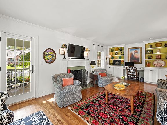 Step inside from the beautiful stone walkway to the foyer, where you will notice original hardwood flooring and ample natural light throughout the home. Framed by an arched doorway, the large formal living room with built-in book cases, a gas fireplace, and access to the covered side porch is to your left. The formal dining room, with chair rail detailing, is on the right.