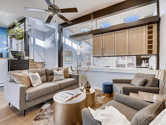 Beautifully updated mid century home near Sloans Lake. Home includes 3 bedrooms and 3 bathrooms. Master bedroom is very large and features large bathroom and walk-in closet. Heated bathroom floor, 11 head steam shower. Kitchen includes 6 burner gas range, and ample counter space for entertaining. Office area is bright and open. Large windows allow lots of light into the main living space. Fenced yard is private and perfect for gathering with friends. Mature landscape provides privacy and sense of tranquility. Large 2 car garage is included. Driveway also provides ample space for parking. Walk to Highlands Square for a meal at one of the many restaurants or farmers market. Sloans lake is an easy walk as well. Downtown is about 1.5 miles away and the bus to downtown picks up across the street.