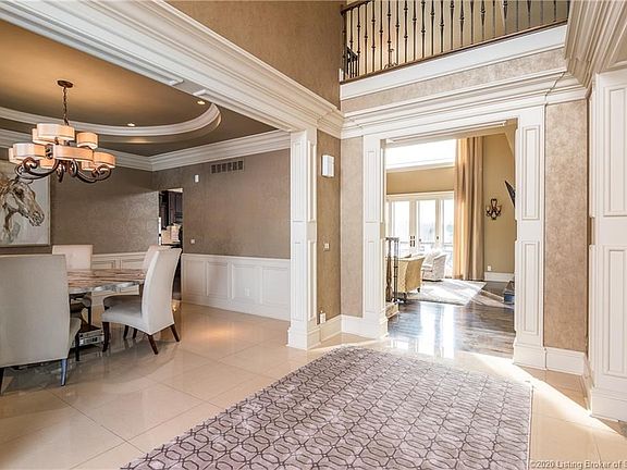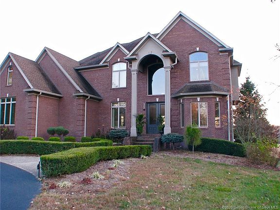 Custom home built by Ballage Quality Homes in 2009. Incredible home on nearly an acre of land in a premier Floyds Knobs subidivison. The home sits on a quiet cul-de-sac with scenic views of the neighbor's lake, yet minutes to downtown Louisville. Well-landscaped front and back yards. Large kitchen, newly remodeled with stainless steel appliances and granite countertops, opens to family room. Family room is 2 story with fireplace, 2 story entryway, formal living and dining rooms and home office. Home features 1st and 2nd floor laundry rooms. Each bedroom features its own bathroom and huge walk-in closets. Beautiful hardwood floors, custom woodwork and built-ins. Large finished basement with kitchenette. Private backyard with a beautiful inground swimming pool, fire pit, covered patio and deck off the family room. New water heaters in 2017, 2019. This home is a MUST SEE!!!