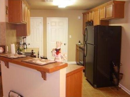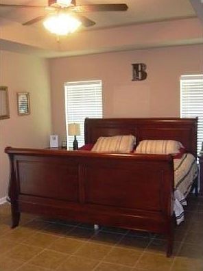 Pet Friendly! A new fence (not seen in pictures) has been added. '09 const & located in quiet River Woods Recently painted throughout interior. 3 bedroom, 2 bath with oversized 2 car garage for extra storage, large open living area, large lot. Home has all tile floors, large closets; raised ceilings; all kitchen appliances (refrigerator, range, dishwasher, microwave); master suite with large bathroom, double sinks, garden tub and separate large shower; his and her walk-in master closets. Has never flooded