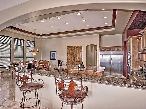 Stunning New River property sits on just over an acre with breathtaking mountain views which also includes horse privileges! Property boasts soaring 12' ceilings & beautiful travertine floors in main living areas and bathrooms with wood floors in living room & master bedroom. Kitchen opens to family room & is a chef's dream w/ huge island, TWO large breakfast bars, granite countertops & backsplash, stainless steel appliances & built-in extra wide fridge/freezer. Large master suite with 2 walk-in closets with wood flooring and relaxing mountain views. Master bath boasts travertine nearly floor to ceiling and includes a jetted tub! Backyard offers incredible mountain views, large covered patio and lots of space to make it your own! This property feels very secluded and serene with the tranquility of the beautiful mountains and large lot. This lot provides enough room to make it your own...pool or horses! Do not miss out on this one!