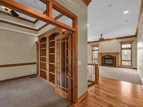 This meticulously designed walk-out ranch offers approximately 2,800 square feet of total finished living space, nestled at the end of a peaceful cul-de-sac. The open-concept layout features 11' ceilings and elegant crown molding, allowing natural light to pour into every room. The kitchen is highlighted by stunning Hickory cabinetry, which is complemented by oversized windows in the dining area that invite abundant sunlight. The rich Hickory wood extends throughout the home, adding a warm, sophisticated touch. The main level includes a spacious master suite with a luxurious en suite bathroom, complete with a jetted tub, ideal for relaxation after a long day. Two additional bedrooms and a full bathroom round out the main floor. The walk-out lower level is an entertainer's dream, featuring a large family room with a cozy fireplace, a fourth bedroom, and a bathroom. A unique feature of the lower level is the convenient storage space for lawn equipment. Step outside to enjoy the elevated deck, offering peaceful southwest-facing views. The deck accommodates both a dining area and a fire pit seating space, perfect for relaxing or hosting guests. Located within the Urbandale School District, this home combines impeccable craftsmanship, thoughtful design, and a serene setting to create the perfect place to call home. All information obtained from seller and public records.