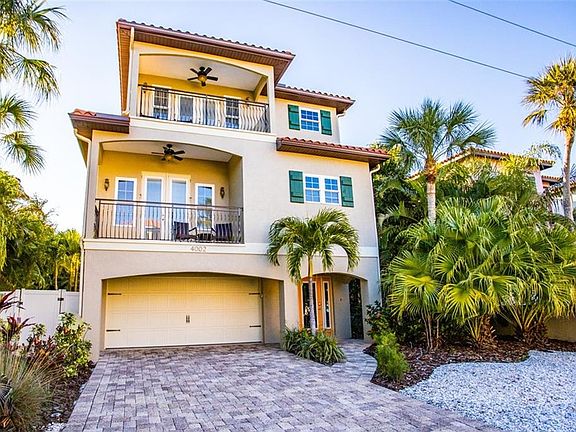 Welcome to Villa di Puglia, a luxury island home with a high-class resort feel that has it all! Seclude yourself in the private tropical oasis and never leave, or venture out and experience all that Anna Maria Island has to offer. You can reach main Island attractions in a short walk, like Manatee Beach, shopping, restaurants and entertainment. Hop on the free Island Trolley to explore Pine Avenue to the north or Bridge Street to the south. Back home, experience one of the largest, most admired pools on the island. Surrounded by 100+ lavish, native and topical plant species you'll have the utmost privacy. Featuring night lighting, a babbling brook, waterfall and along beach entry area with fountains. Prepare refreshing drinks at the outdoor kitchenette and keep them close at the swim-up tiki bar next to the waterfall. Nestled behind a screen of palms, ease into the secluded jacuzzi to soak your worries away. The outdoor bar and kitchenette is well-appointed and includes plenty of counterspace and built-in grill. Prepare meals with ease and serve them at the dining tables provided on the pool patio, sheltered under the second-floor balcony.Take in spectacular 360-degree views from the rooftop deck, get a clear view of the Gulf, intercoastal waterway, Skyway Bridge and, of course, the gorgeous sunrises and sunsets.The indoor living areas are spacious and comfortable. An elevator makes settling in a breeze and is perfect for anyone that needs to avoid the stairs. Call today for an appointment to view.