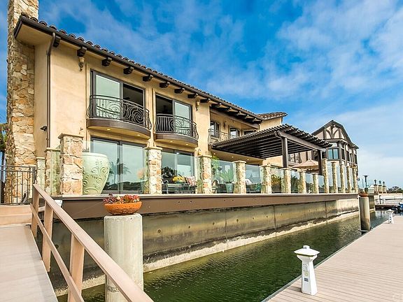 Beautiful Huntington Harbour Mainland Waterfront Estate. This turnkey Mediterranean waterfront estate includes 5 bedrooms, 4 bathrooms, nearly 5,000 sf of living space, and 100 ft of water frontage. Park your yacht or several smaller boats at your new private 80-foot boat dock with direct ocean access. This gorgeous home is custom, completely remodeled and completed in 2009. The custom wrought iron double door entry leads you into an enlarged foyer with a two story sweeping staircase, and a 28 ft turret. Enjoy the chef's dream kitchen that boasts, two islands, all stainless Viking and Subzero appliances, Miele plumbed in coffee system, a butler's pantry, an adjacent prep-kitchen/laundry room, and amazing water views right off of the great room. The master suite, master retreat, master bath with heated floors, and master walk-in closet, office/coffee bar have their own wing of the house with water views and balconies. Three additional guest bedrooms upstairs, and one bedroom and bathroom downstairs. Many custom and designer features throughoutincluding custom cabinetry, designer paint, light fixtures, lutron lighting, mosaics, marble, travertine, electric blinds, built in tv's with surround sound, alarm system, tiled garage with lot's of storage. Invite your friends to a front row seat to the annual Huntington Harbour Boat Parade. Make this coastal lifestyle your home today!
